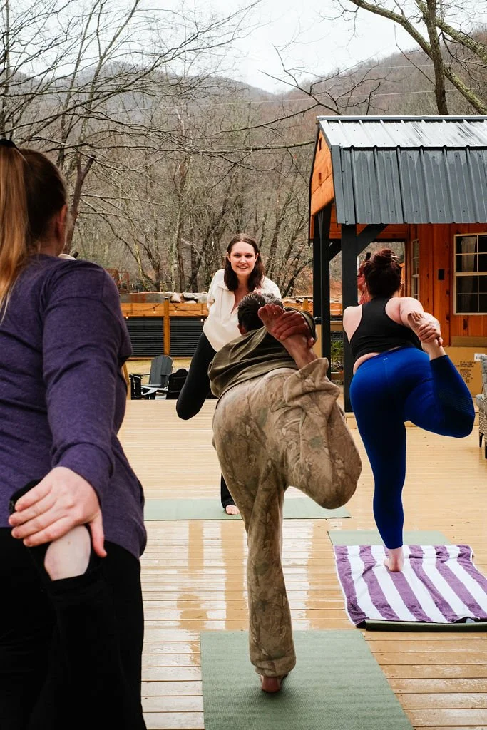 Perfect for bachelorette weekends in the beautiful Blue Ridge Mountains, this session is beginner-friendly, uplifting, and designed to leave everyone feeling refreshed, connected, and ready for the rest of the celebration.